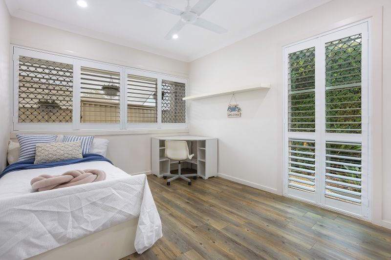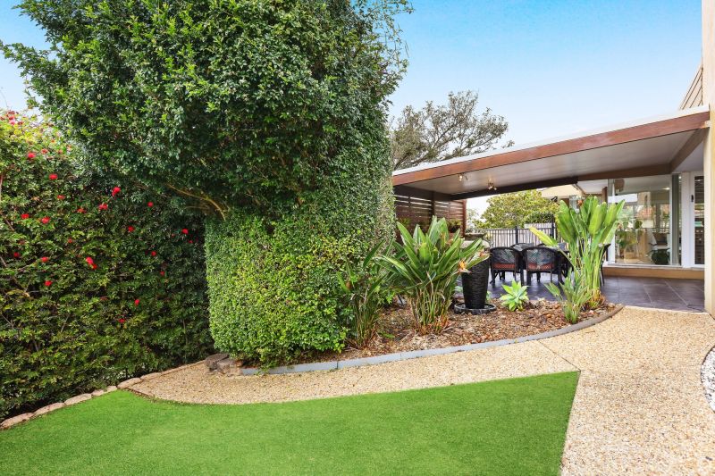 Practical additions, like a double garage with ample storage space, CrimSafe screens, a security system, and 5kw solar panels, make this property both secure and energy-efficient. The low-maintenance garden, bordered by Colorbond fencing and complemented by side access, ensures easy upkeep while maintaining a lush, private retreat.