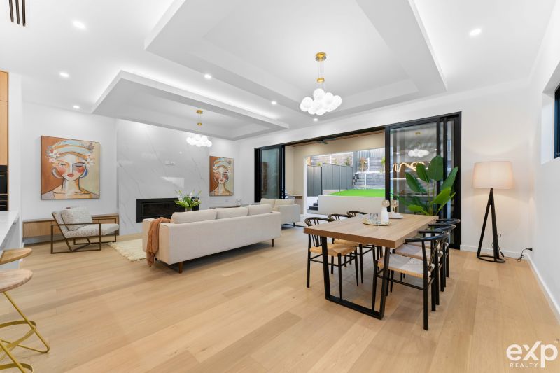 As you approach this stunning property, the elegant exterior with its inviting entry and striking stone features sets the tone for the stylish interior. Inside, the open-plan living area boasts 3-meter high ceilings, timber flooring, a Gas fireplace, and an abundance of natural light, creating a warm and welcoming atmosphere.