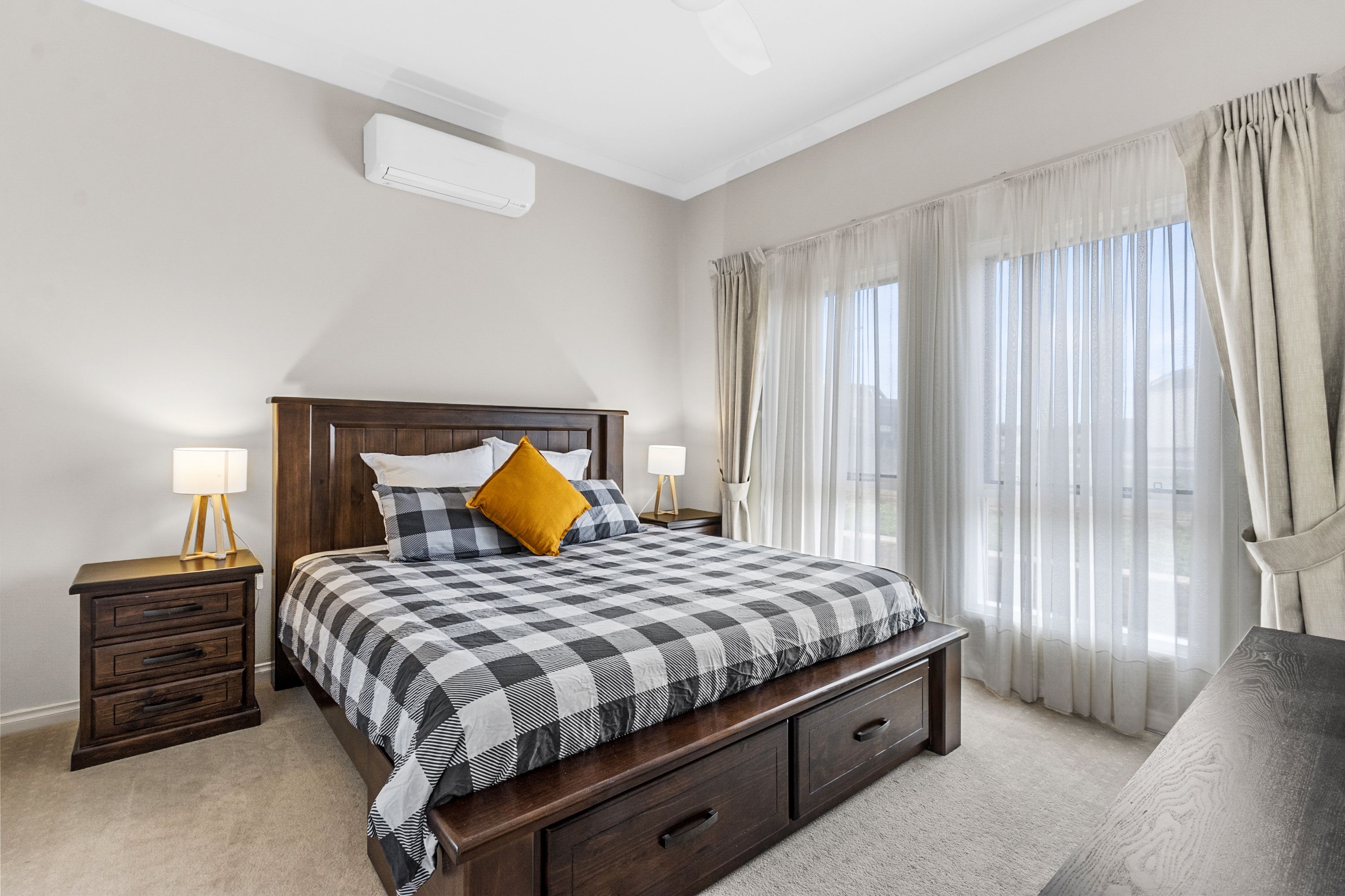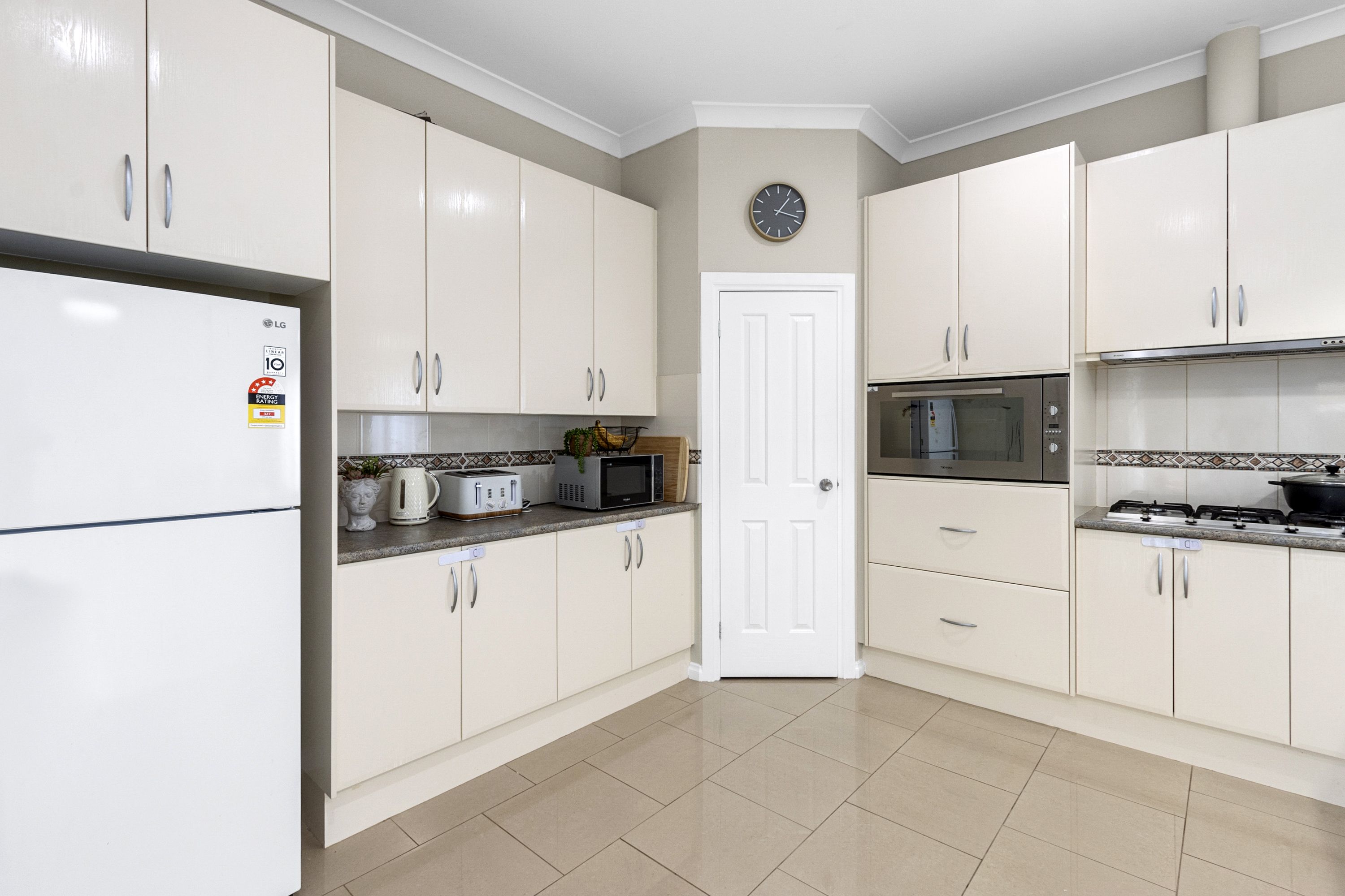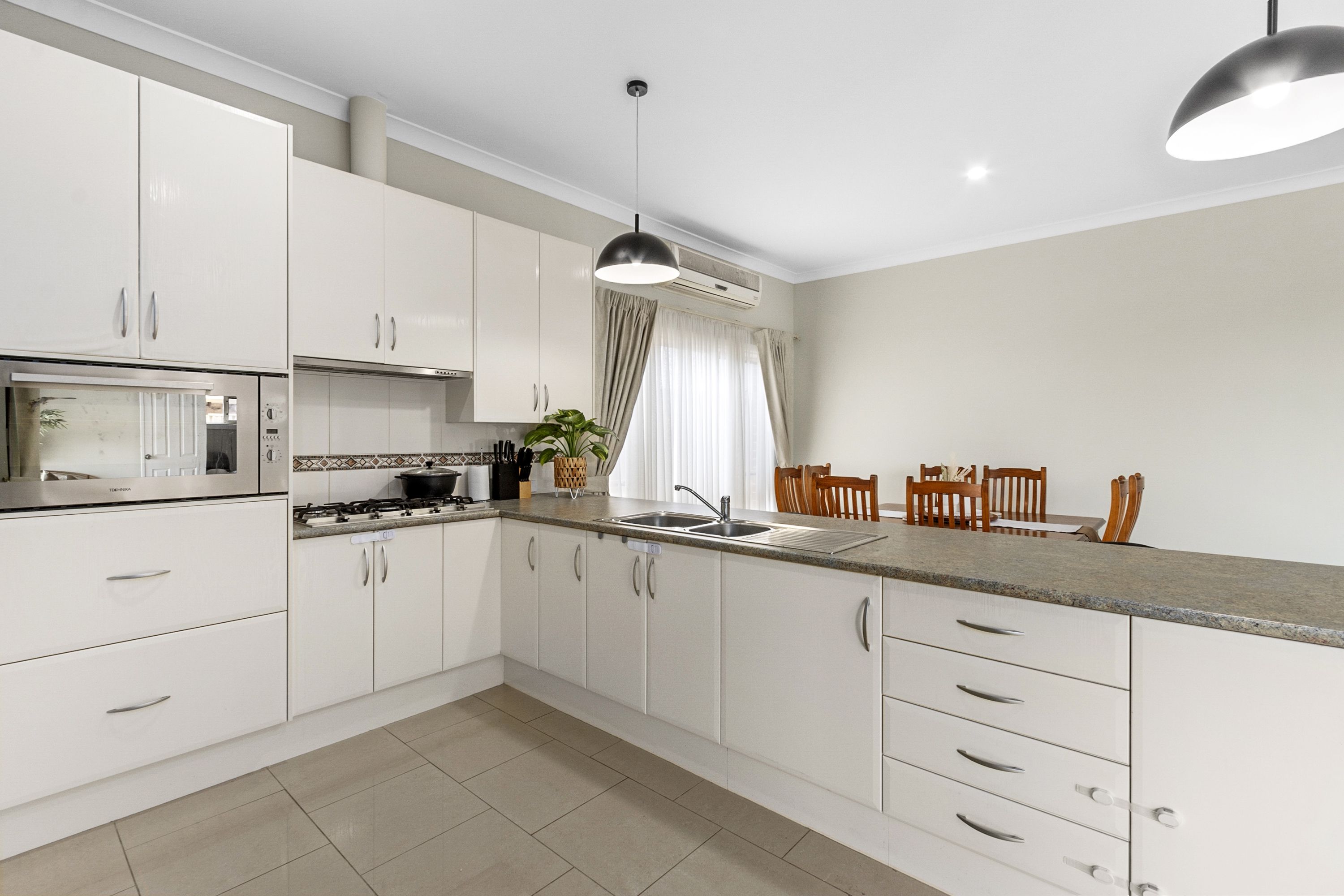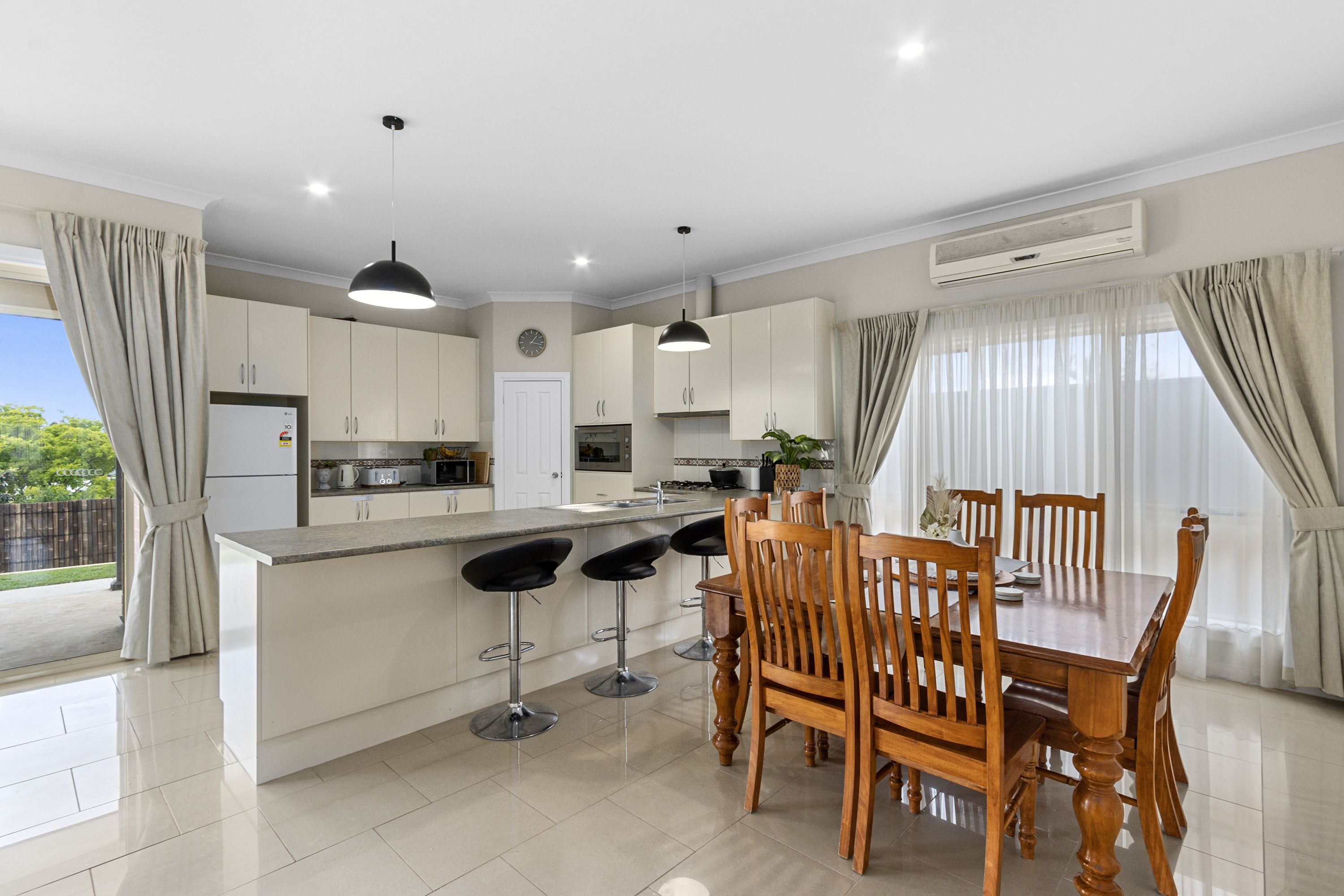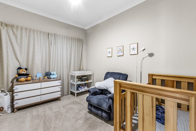 Located privately at the rear of the home you will find the open-plan kitchen, living, and meals area, kept comfortable year-round by a reverse-cycle split system air conditioner. The kitchen is well-appointed, featuring a large 900mm electric wall oven, an oversized gas cooktop, and ample cupboard space. It also offers plenty of bench space, perfect for meal preparation. The rear alfresco is also accessed directly out from this open plan area. Located off the open plan area is a room with twin doors that could be used as the theatre room, formal lounge, kids playroom and bedroom four; a very versatile extra room.
