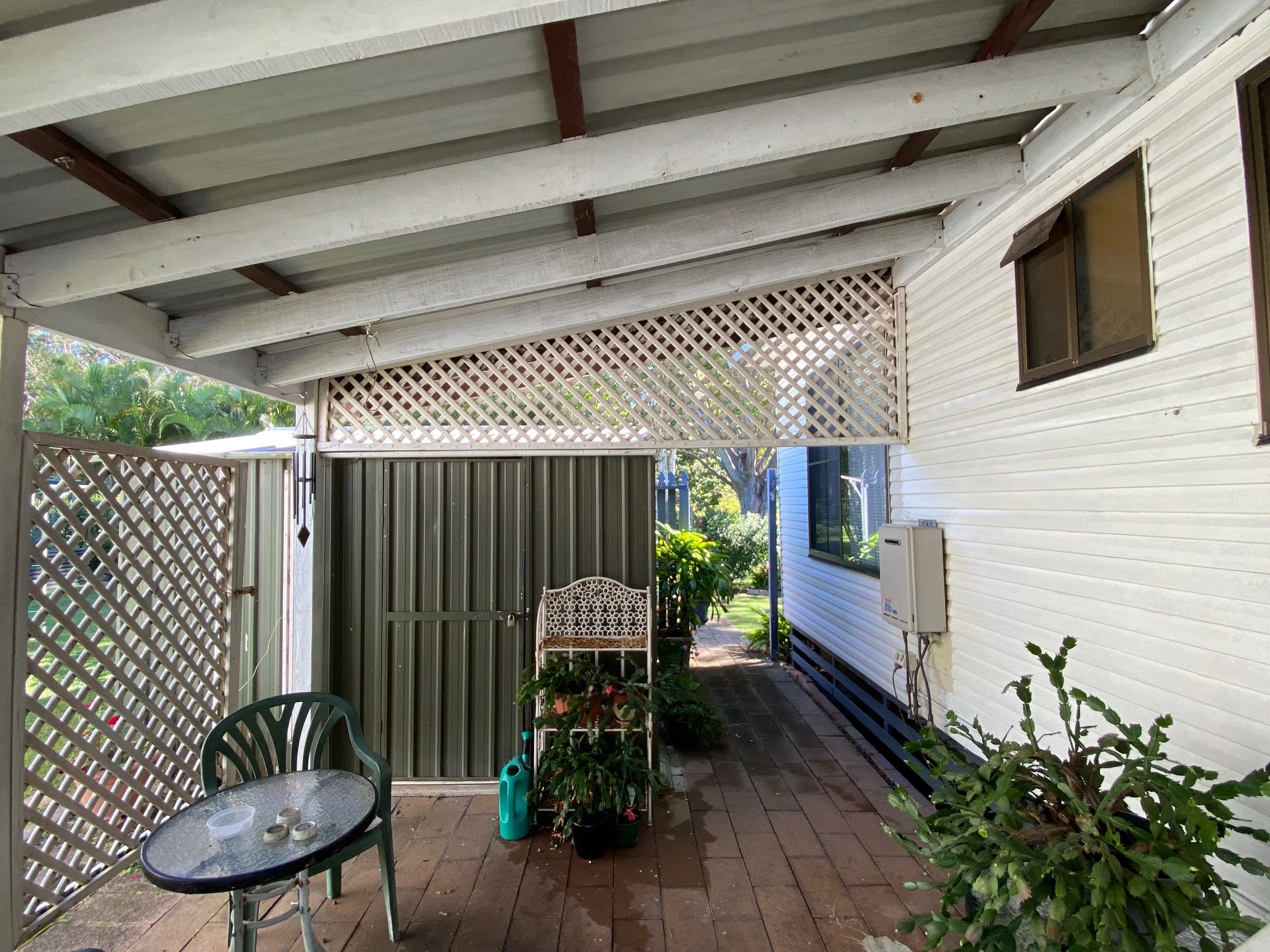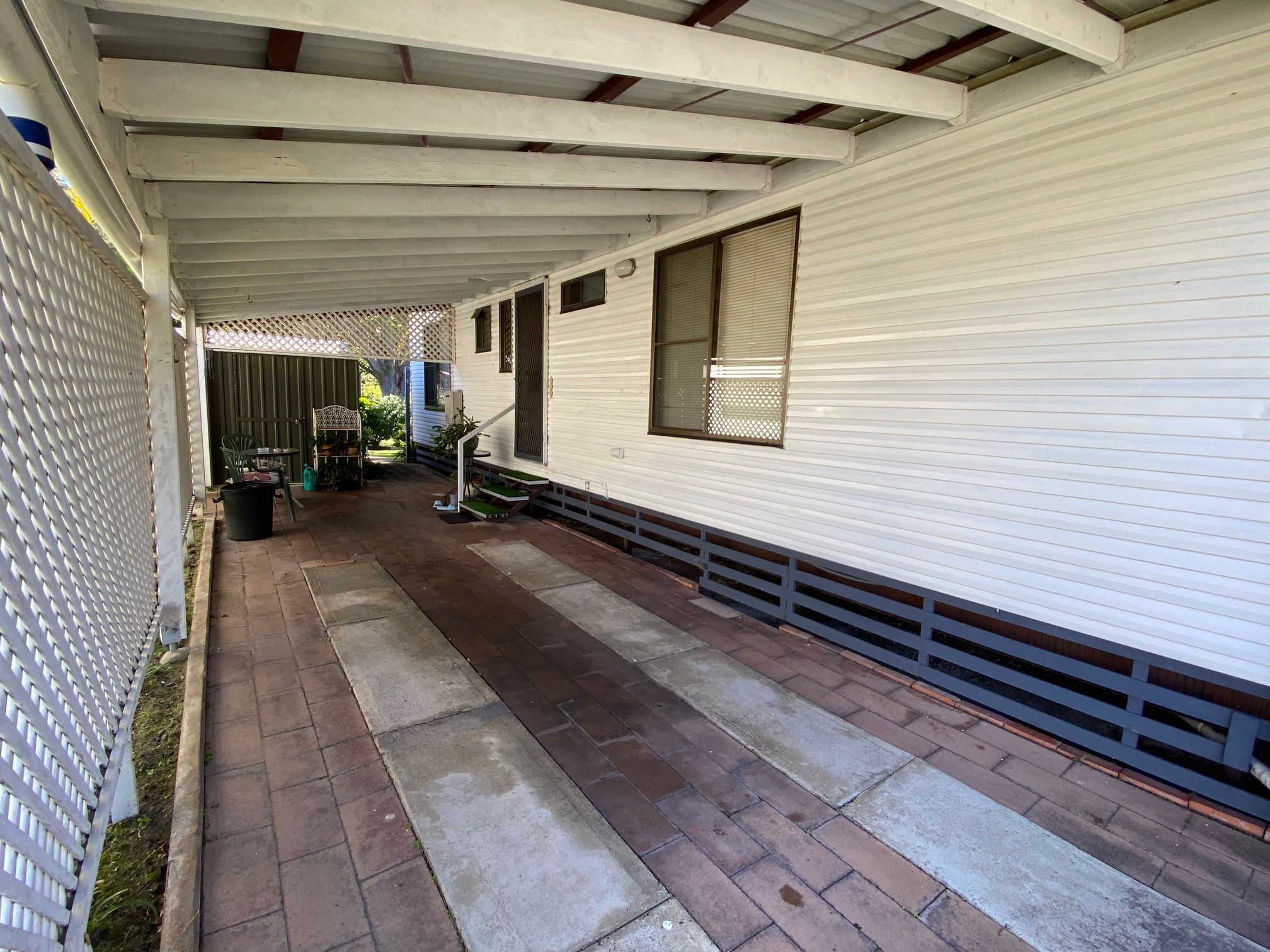 • Large carport enclosed with lattice for added privacy
