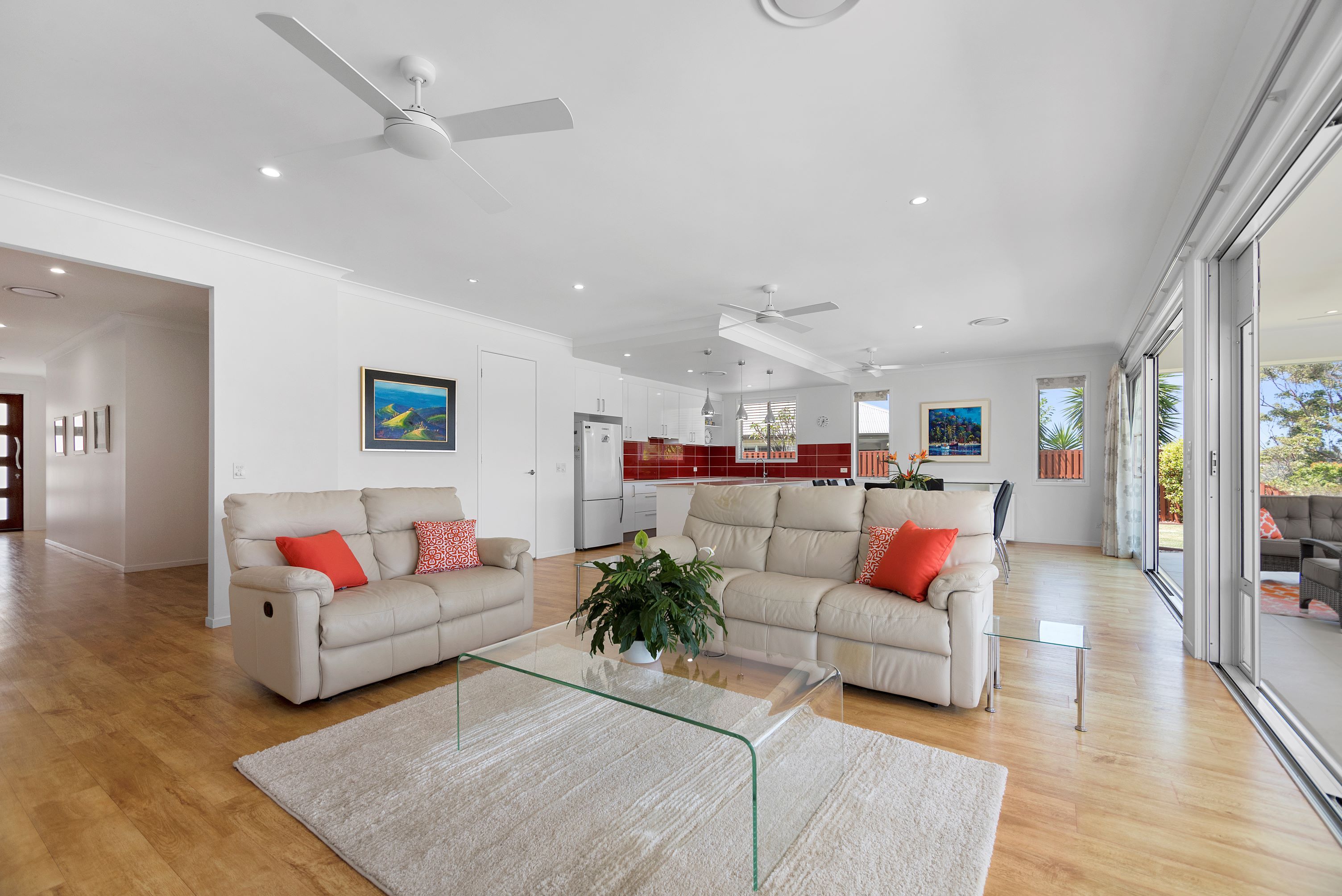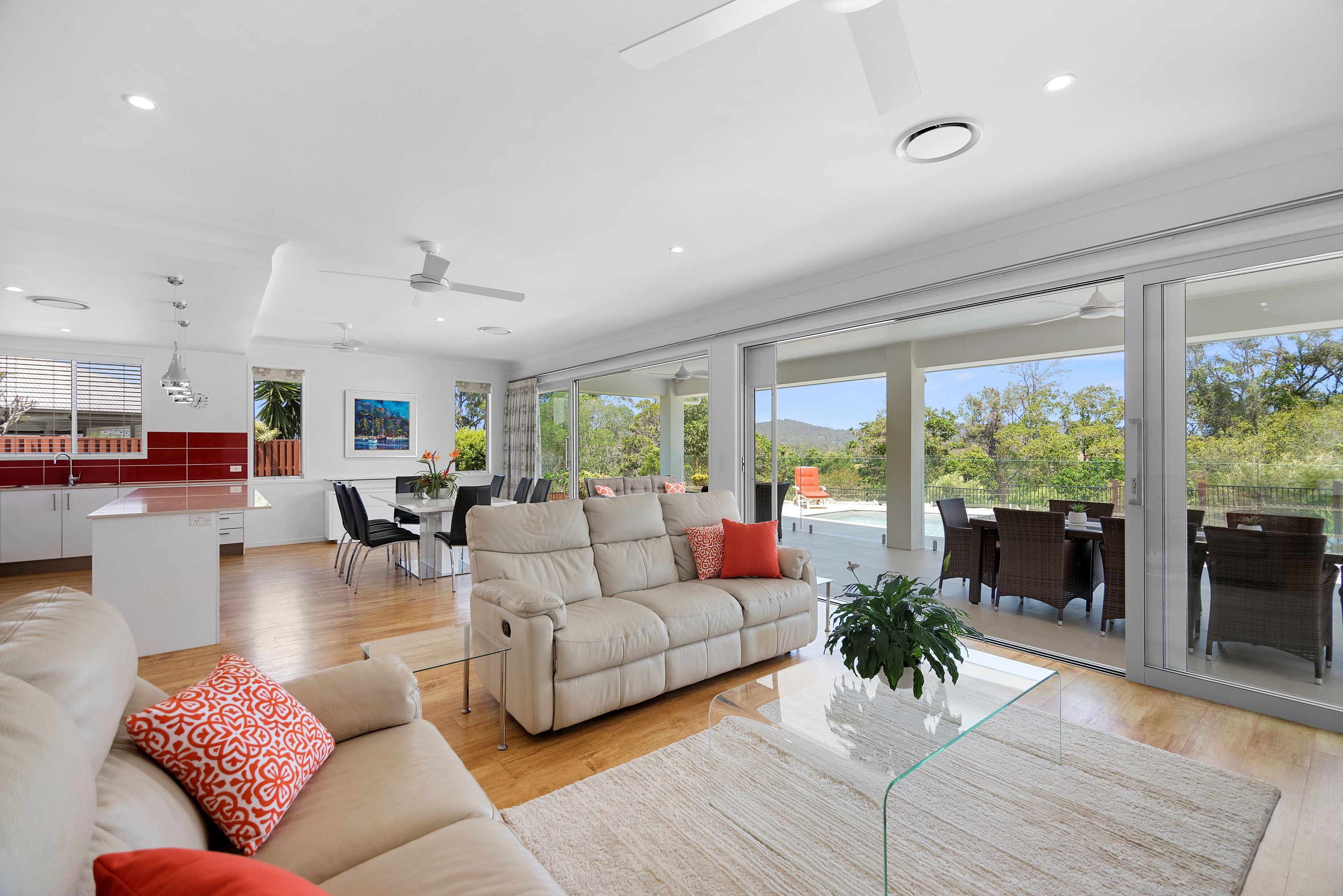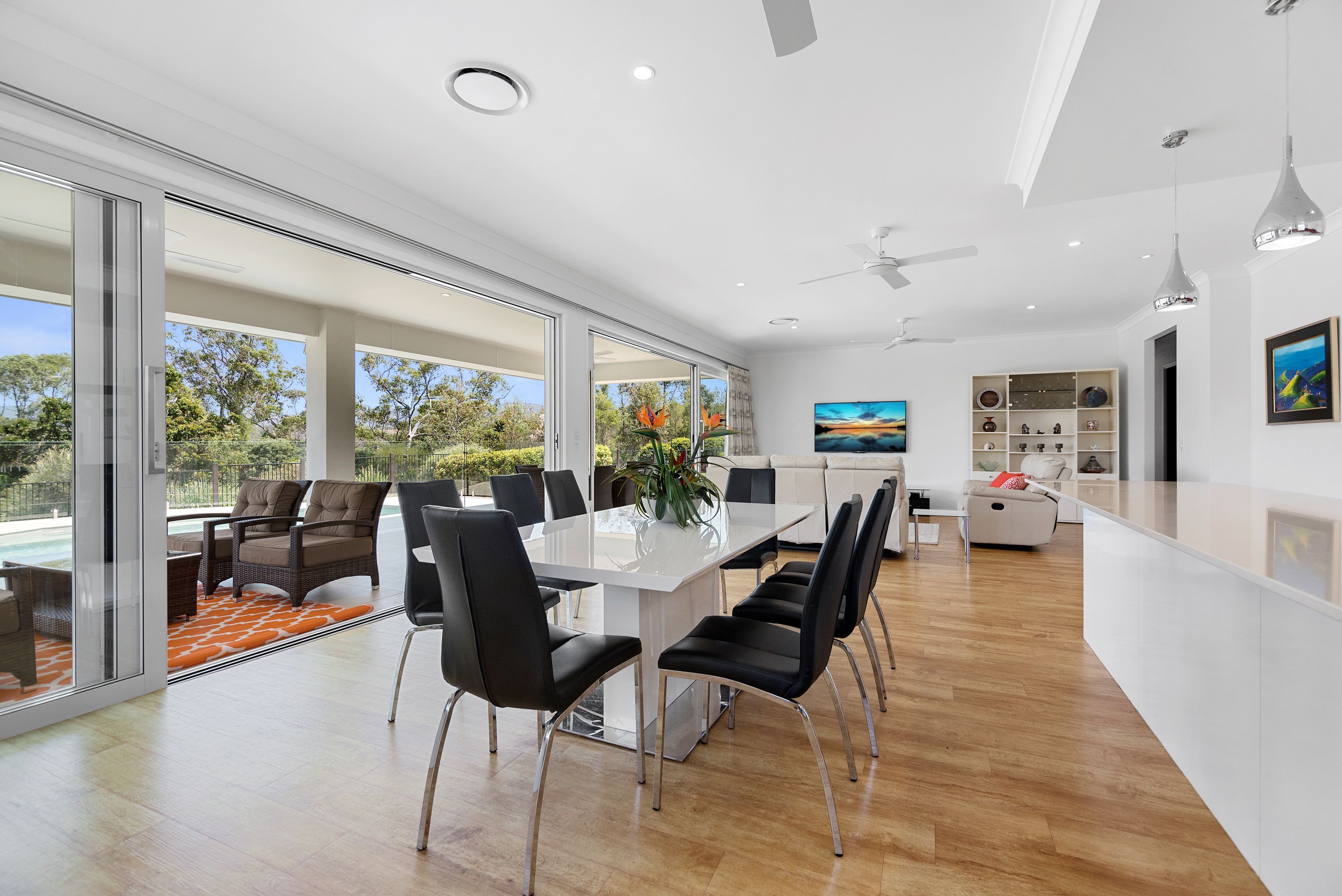 • Open-planned main dining and living area with two sets of boutique glass doors and fully retractable fly screens