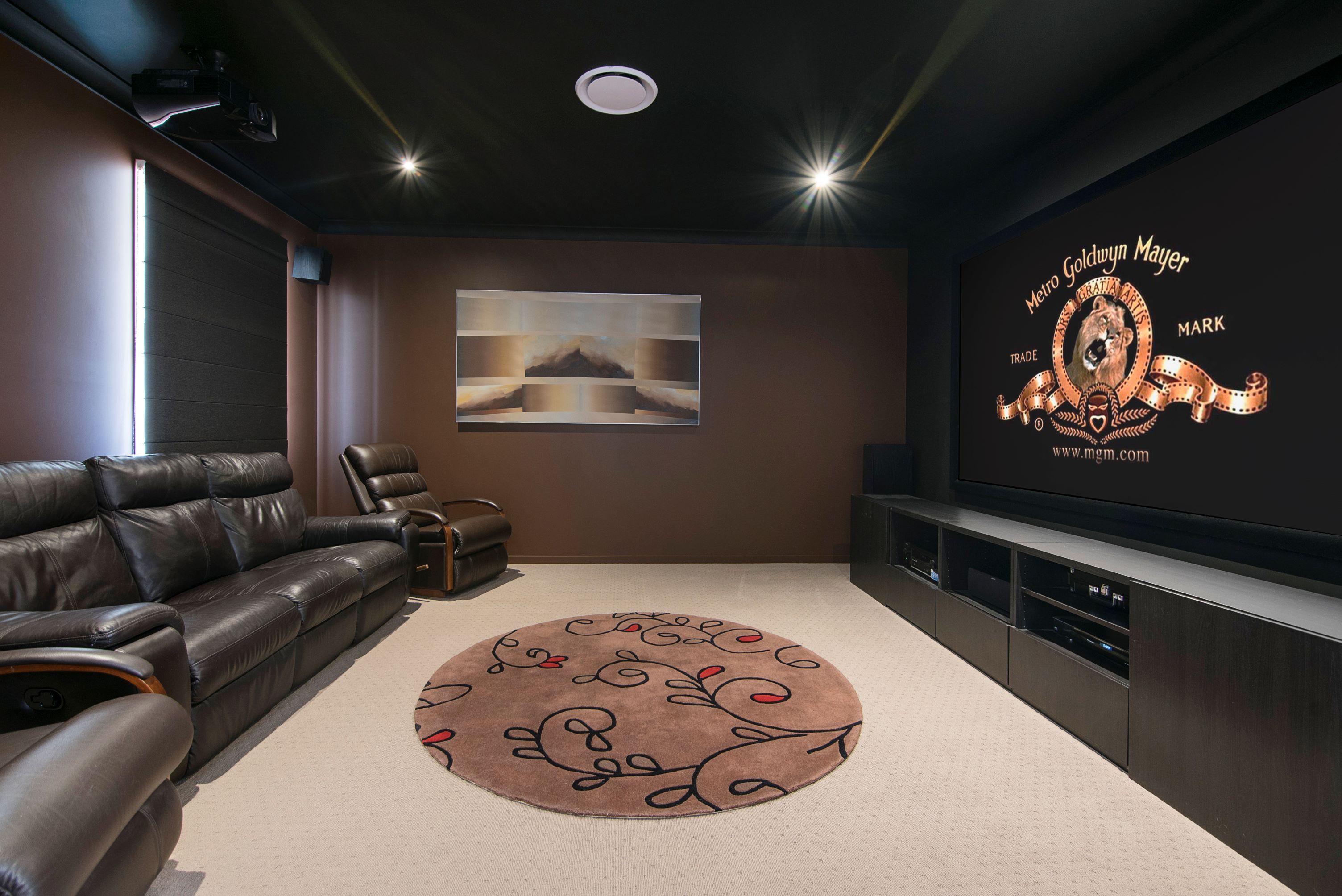 • Fully equipped soundproofed media room with a 120" screen and surround sound system