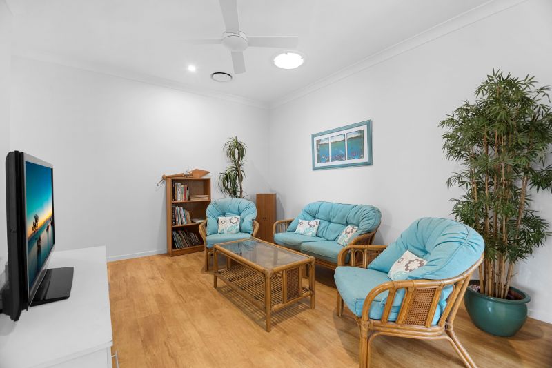 For family and guests, a separate 3-bedroom retreat area at the front of the home, complete with its own bathroom and toilet, offers a private living space.