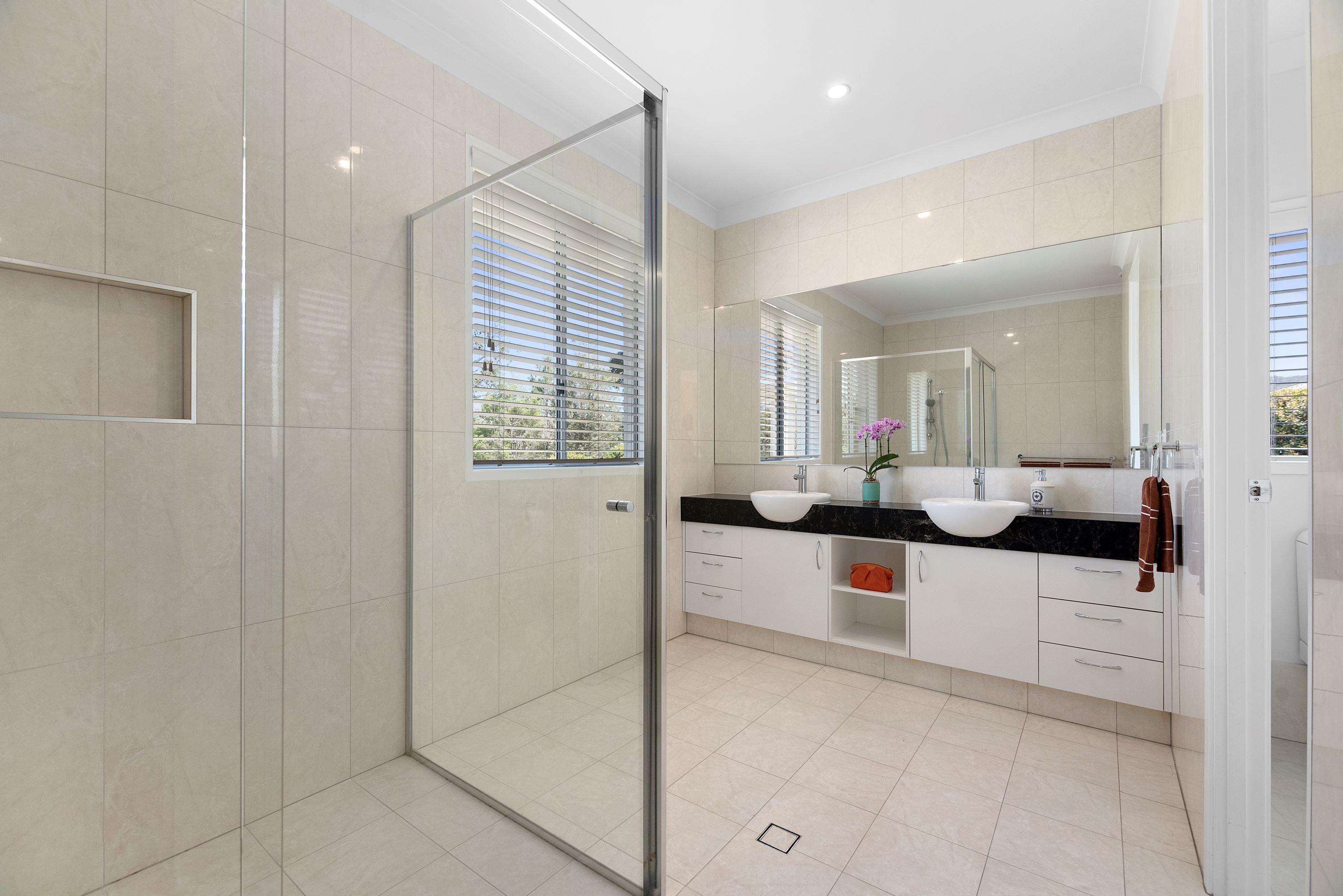 • Spacious master bedroom suite with stunning views, a fully tiled ensuite, separate toilet, and a walk-in wardrobe with a specially designed storage system