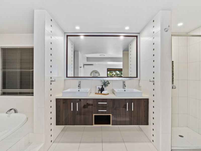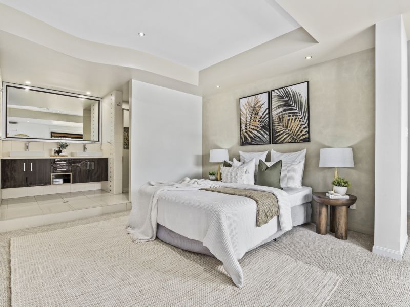 The master suite stands as a testament to opulence, featuring an ensuite adorned with high-gloss finishes, a sunken spa bath, and a walk-in robe, providing a haven of indulgence. Step out onto the private balcony from the master bedroom, where panoramic views beckon, inviting moments of quiet contemplation or al fresco relaxation.