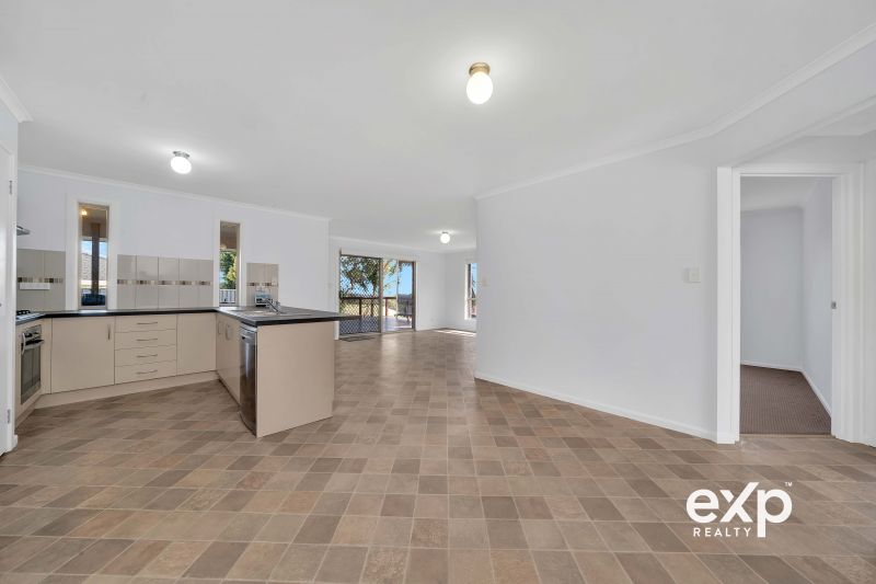 Step inside to discover a spacious and well-lit interior, where large windows invite natural light to dance across the tiled floors. The living areas, adorned with neutral tones, offer a canvas ready for personal touches, while the ceiling fans and air conditioning ensure year-round comfort. The heart of the home, an open-plan kitchen, boasts a practical layout with ample bench space, modern appliances, and a view that extends to the outdoor entertaining area.