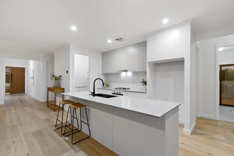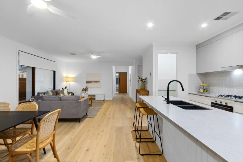 • Open-plan kitchen, meals, and family area designed for modern living.