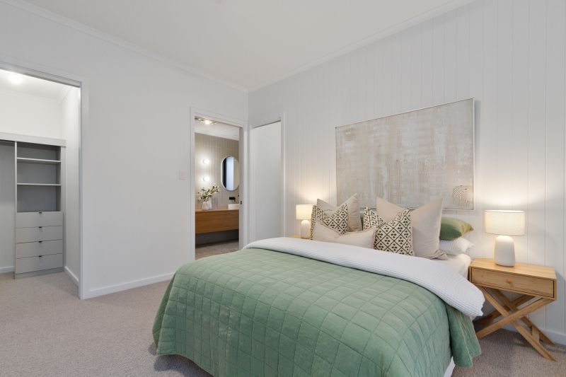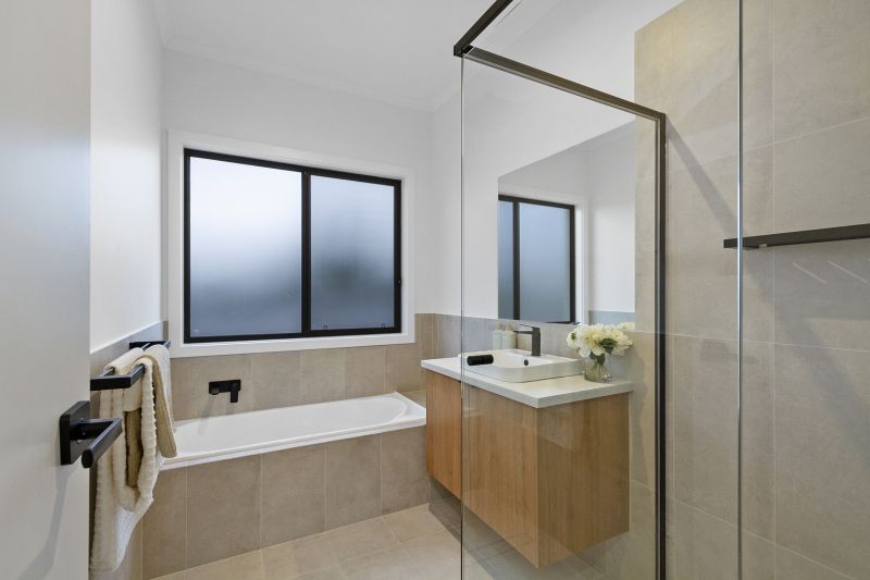 • Master suite with large windows, his & hers walk-in robes, and a luxurious ensuite featuring floor-to-ceiling tiles and double sinks.