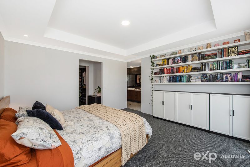 At the front of the home is where you will find the impeccably designed Master wing creating a haven of relaxation and indulgence. Featuring a recessed ceiling, built in shelving, a walk-through robe everyone dreams of and a sleek ensuite with a double shower recess & vanity plus separate toilet.
