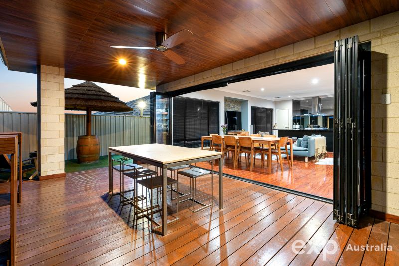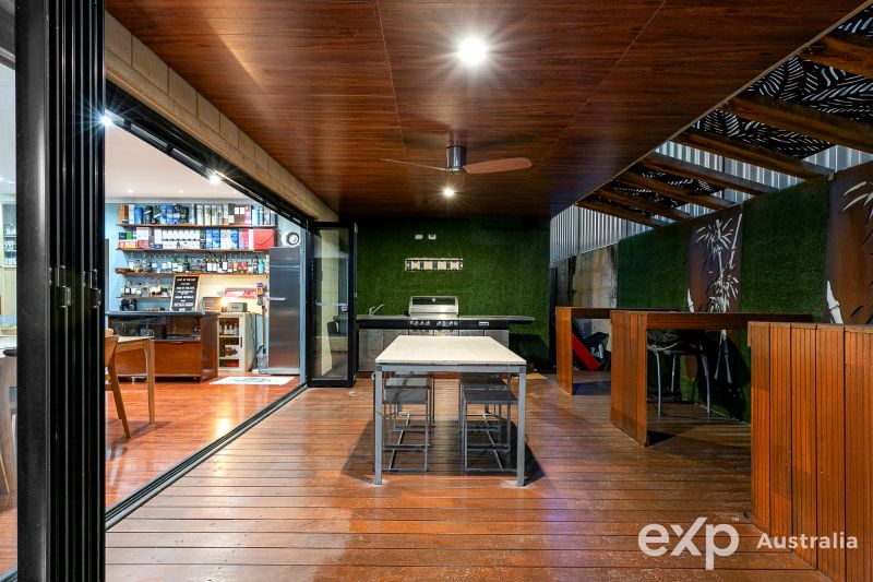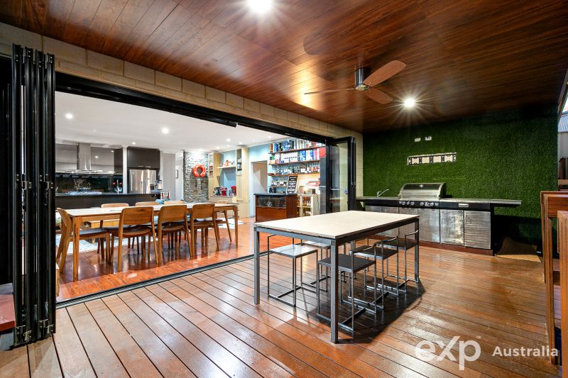 Step out side through the bi-fold doors to the well apointed alfresco entertaining area consisting of built in tables, built in bbq, easy care decking and artificial turf.