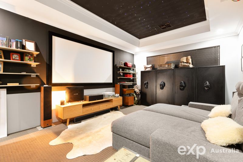 The property consists of three Bedrooms plus a home office, two living areas with open plan meals and family room with feature stone cladding and quality fixtures to the galley style kitchen. Theatre room with feature star lighting is the ideal place to retreat whilst watching a movie.