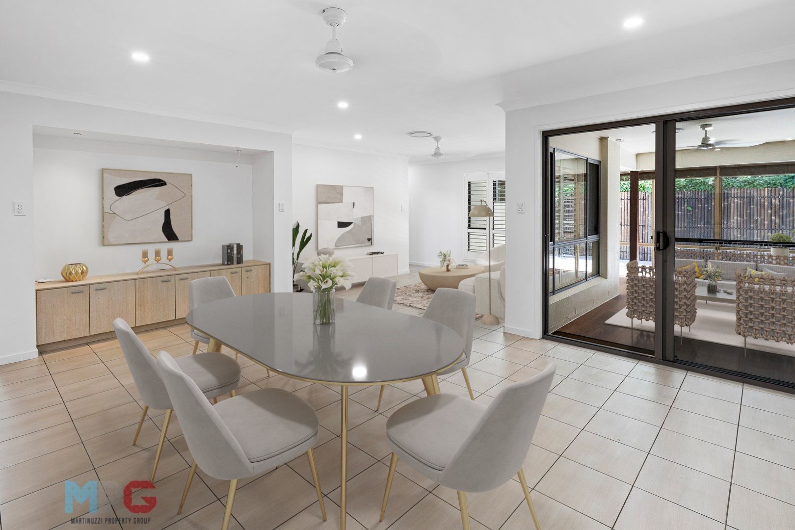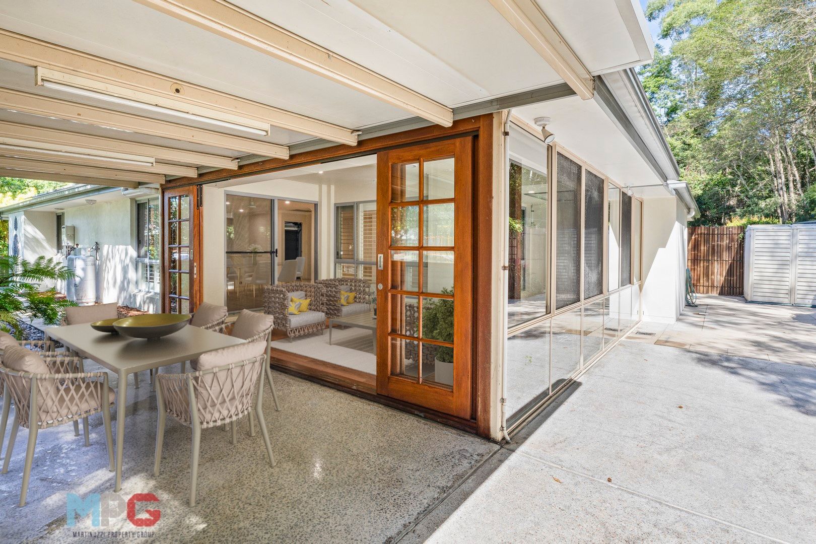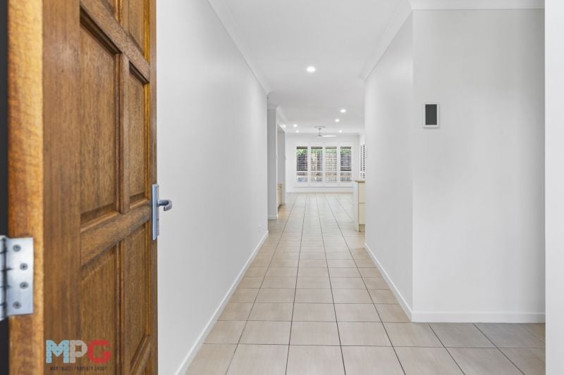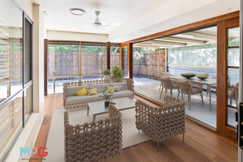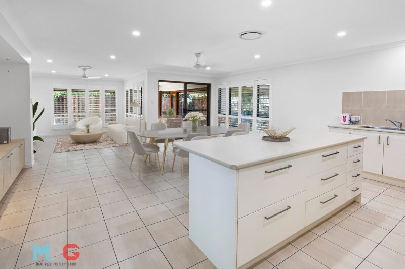 Set on a 464-square-metre parcel of land, there is an array of enticing features designed to provide a seamless blend of indoor and outdoor living. The home's layout encompasses multiple integrated zones for living and entertaining, including a delightful sunroom connected to a generous patio through wide stacker doors, inviting the Queensland sunshine to flood the space.