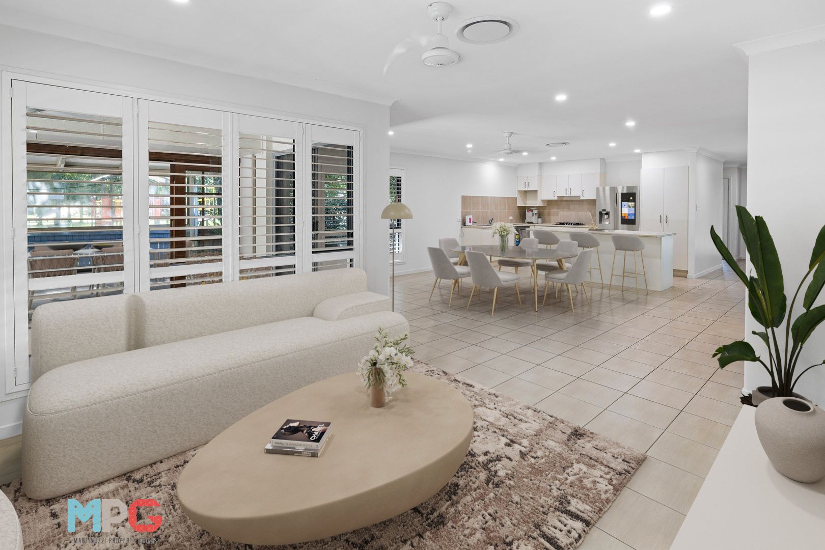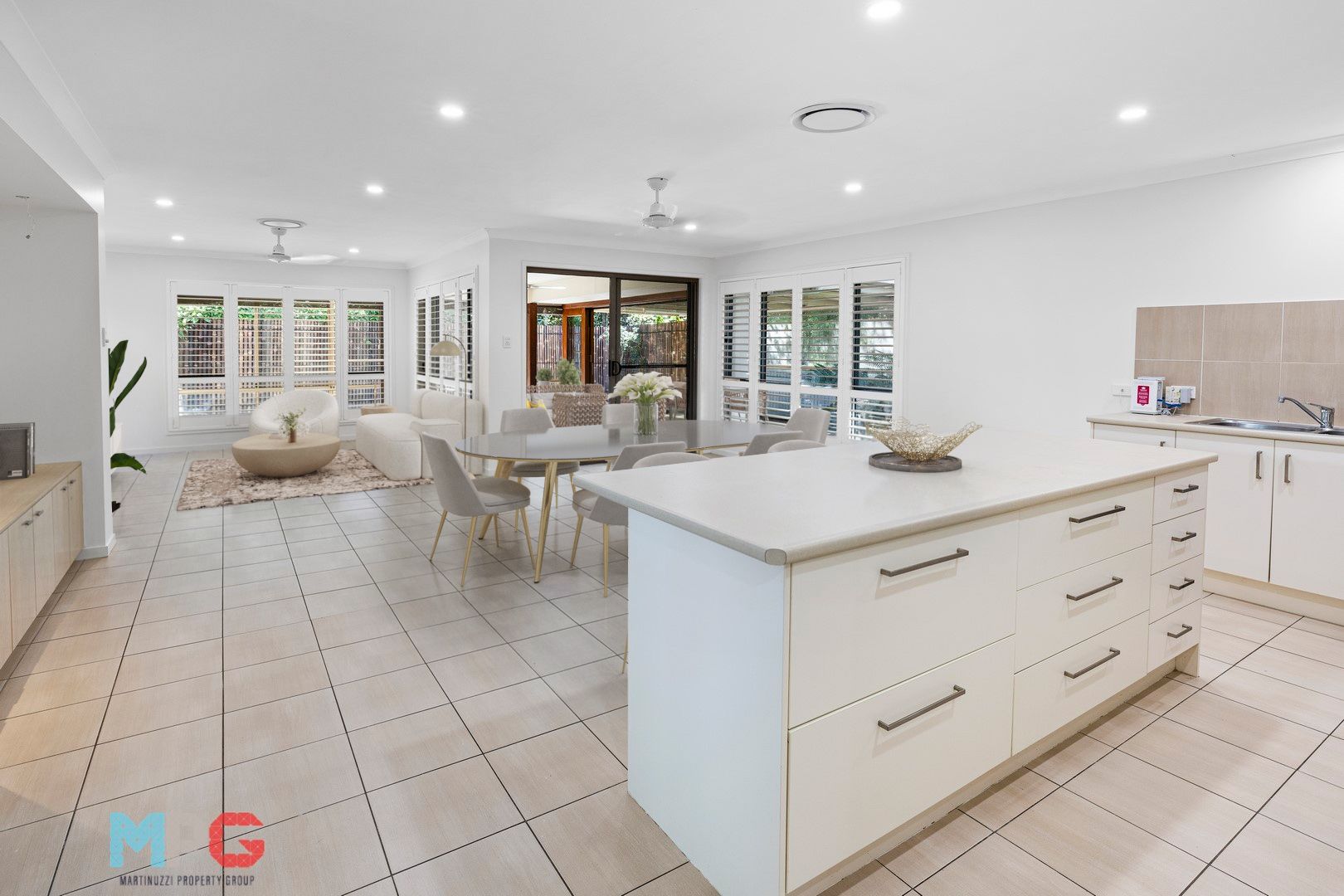 The heart of the home is the central kitchen, an island bench for casual dining, sure to please the family chef. The house is adorned with quality plantation shutters that add a touch of elegance while ensuring privacy.